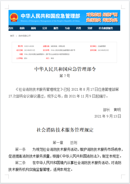 《中華人民共和國應(yīng)急管理部》2021年9月13日下達的第7號令: